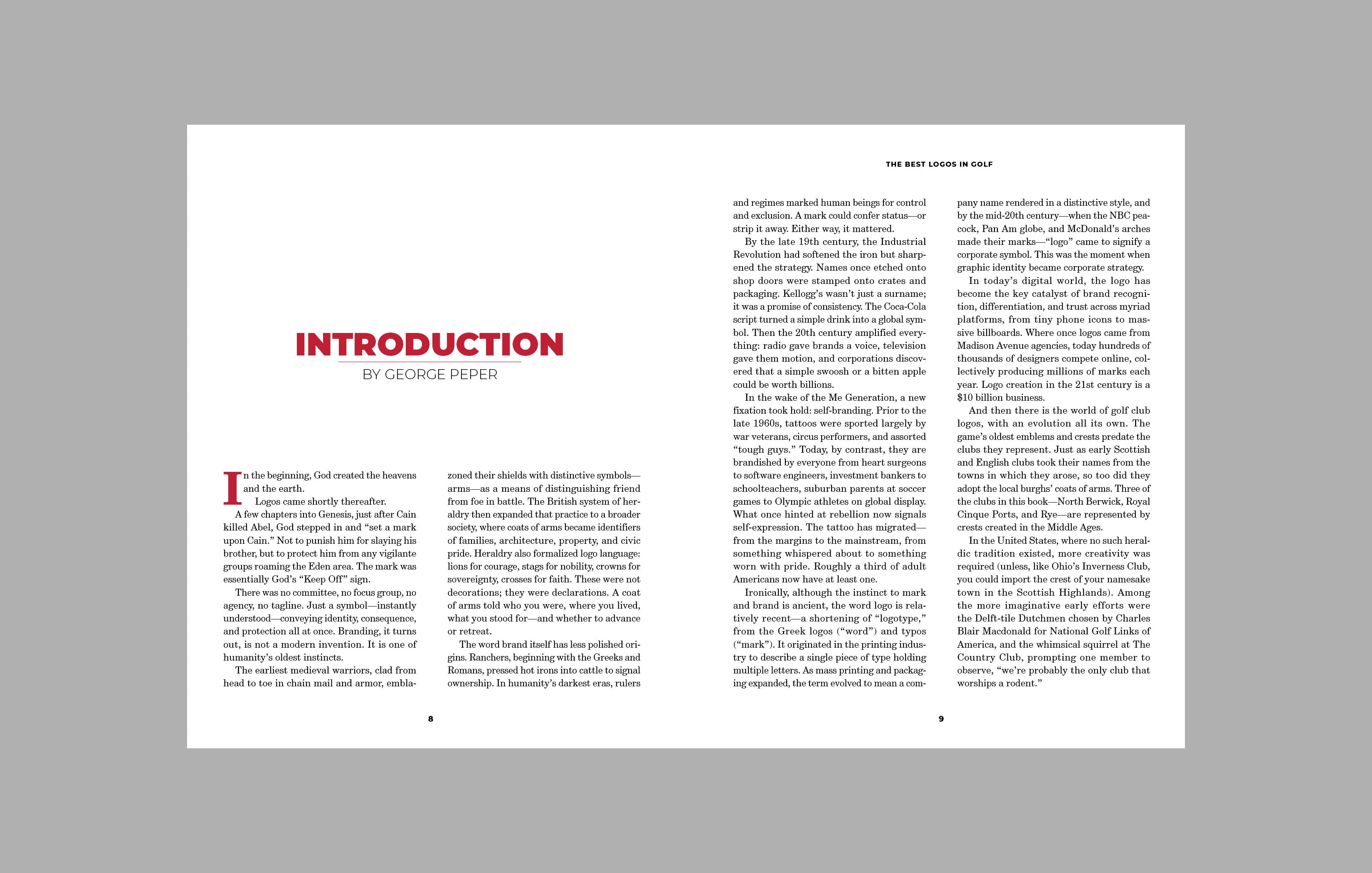 Legendary golf writer GEORGE PEPER was the editor-in-chief of GOLF Magazine for 25 years. His bestselling books include Two Years in St. Andrews, The Secret of Golf, Playing Partners, The Story of Golf, True Links, Golf in America, and most recently, Rainmaker (with Hughes Norton). Peper now lives in Charleston, South Carolina, where he serves as the editor of LINKS Magazine. The Best Logos in Golf is his 20th book.