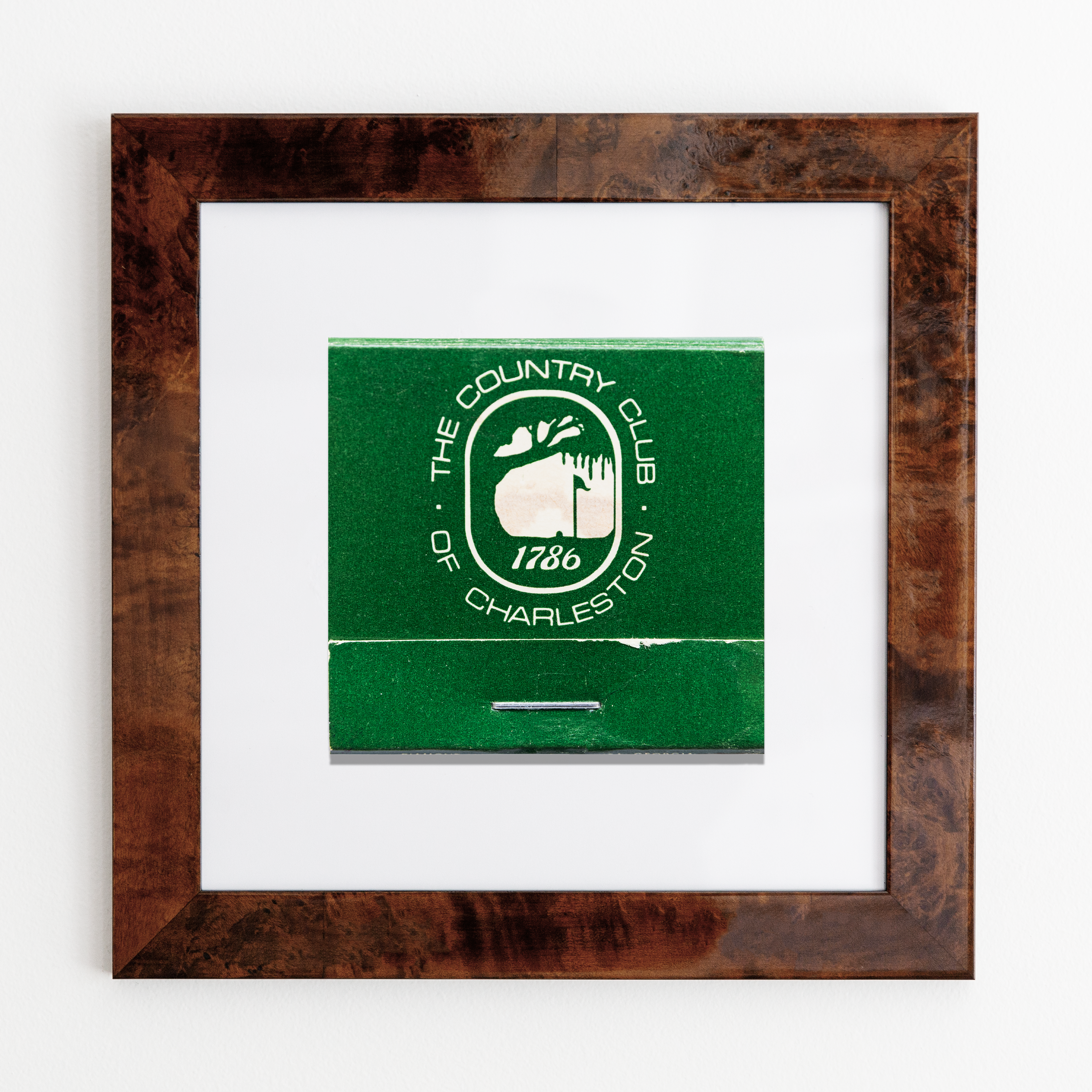 The Country Club of Charleston framed print captures the essence of vintage matchbook art in a 12x12 inch print, framed in a minimalist 14x14 white flat profile. With a clear acrylic cover ensuring safe delivery, this print is the perfect gift for anyone looking to add a piece of history to their walls.