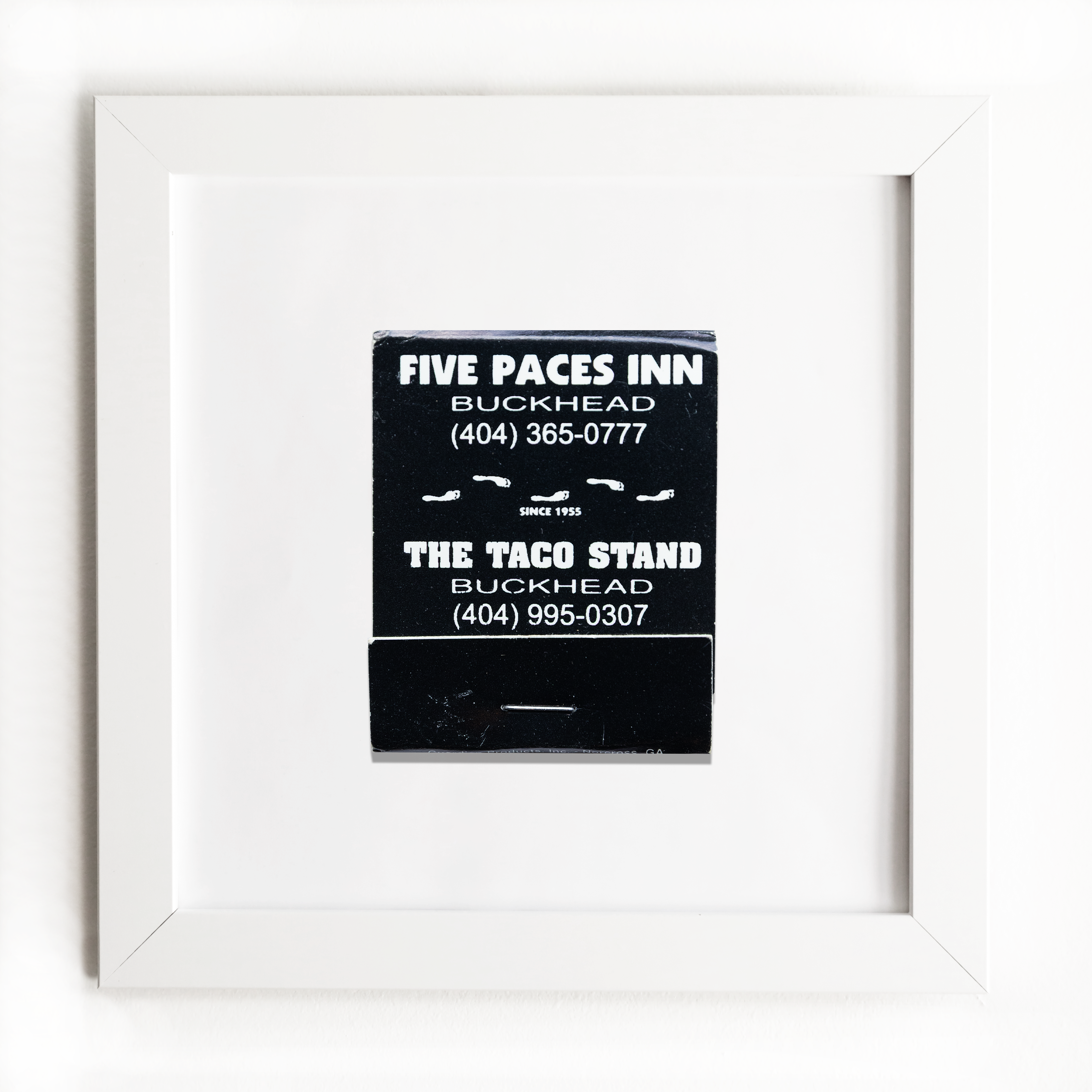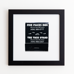 The Five Paces Inn print showcases an iconic matchbook design.
