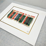 - Double-matted with 4ply smooth white border and metallic gold core.