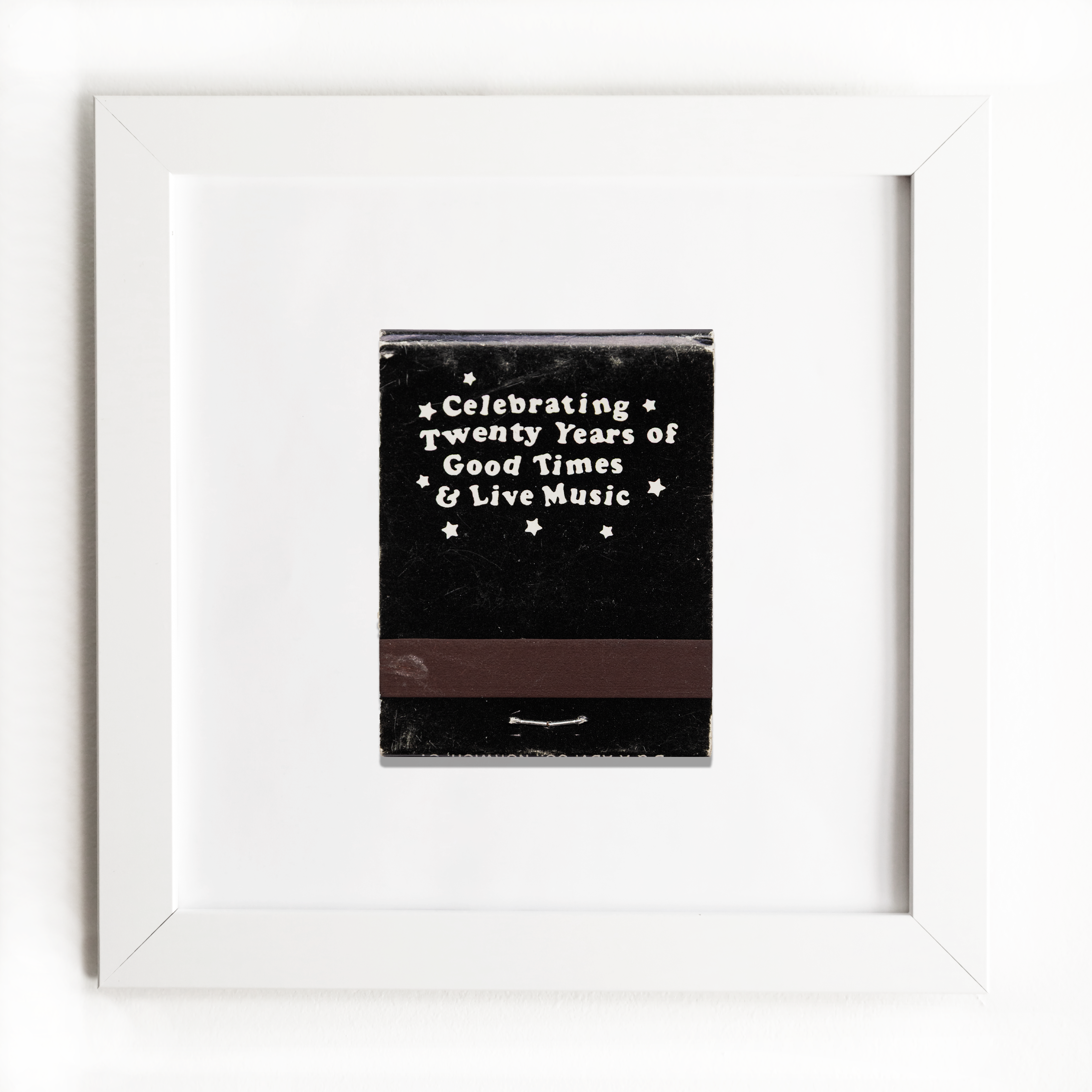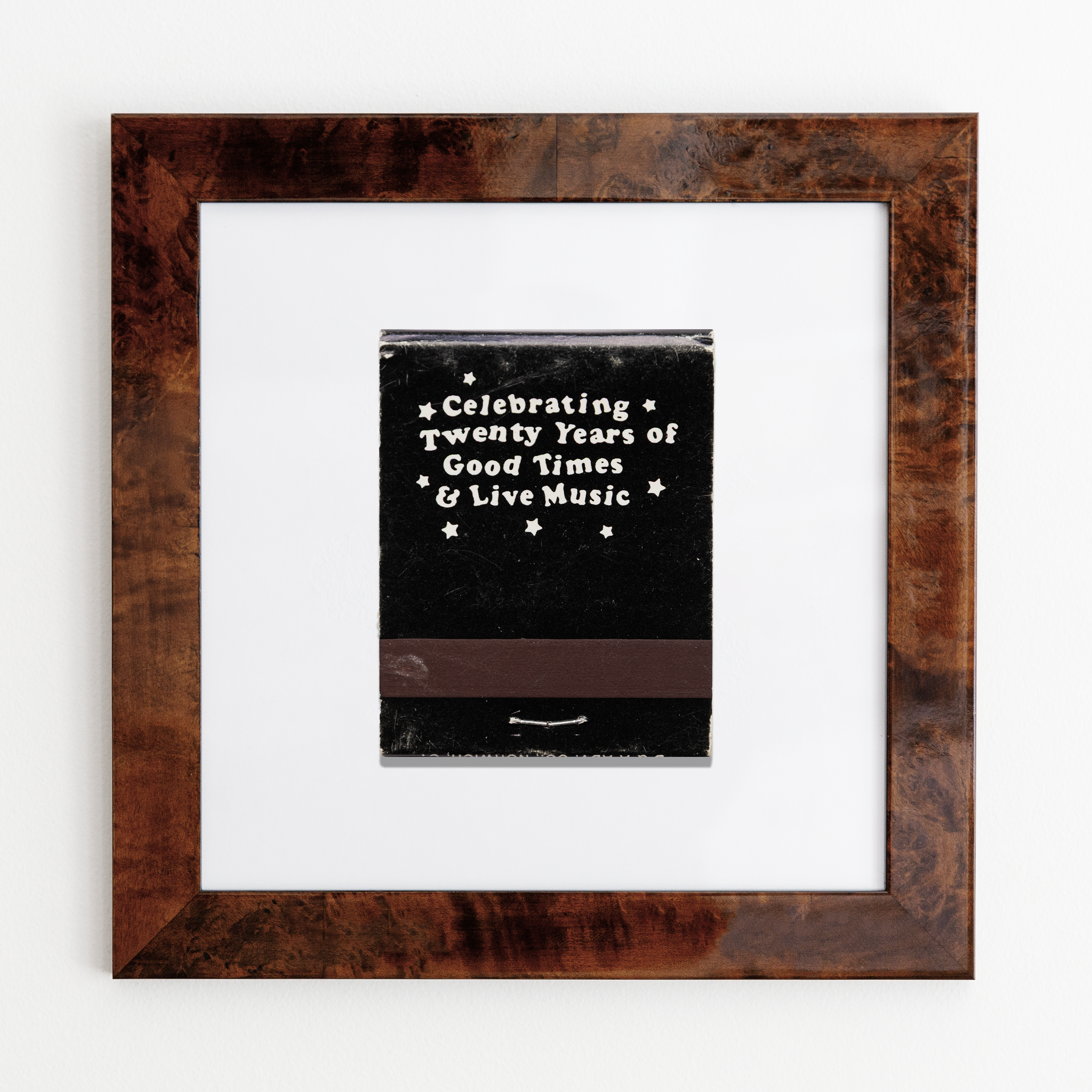 The Toads Place (back) framed print captures the essence of vintage matchbook art in a 12x12 inch print, framed in a minimalist 14x14 white flat profile. With a clear acrylic cover ensuring safe delivery, this print is the perfect gift for anyone looking to add a piece of history to their walls.
