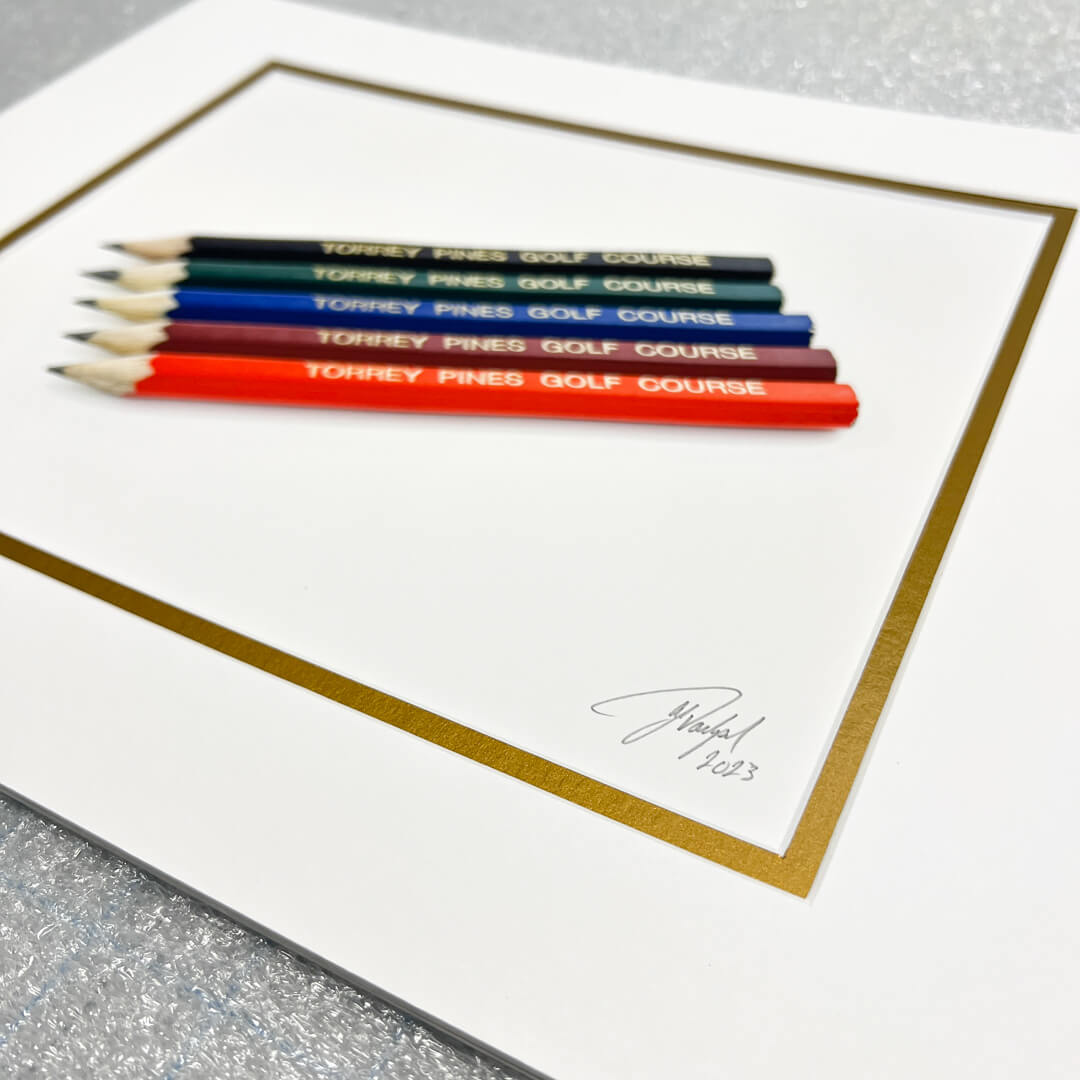 A unique fine art print featuring all five different color pencils from Torrey Pines Municipal Golf Course in La Jolla, Calif.