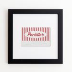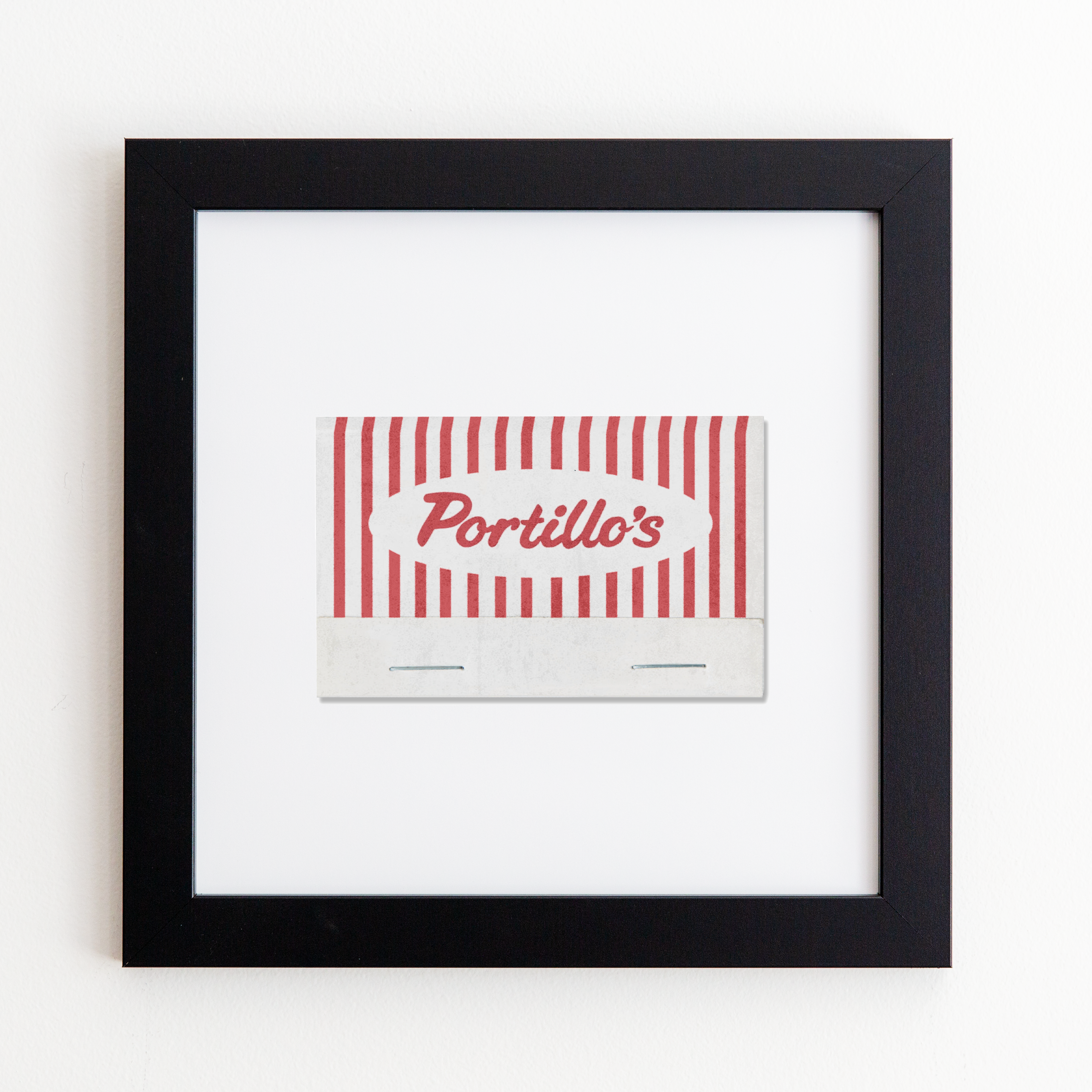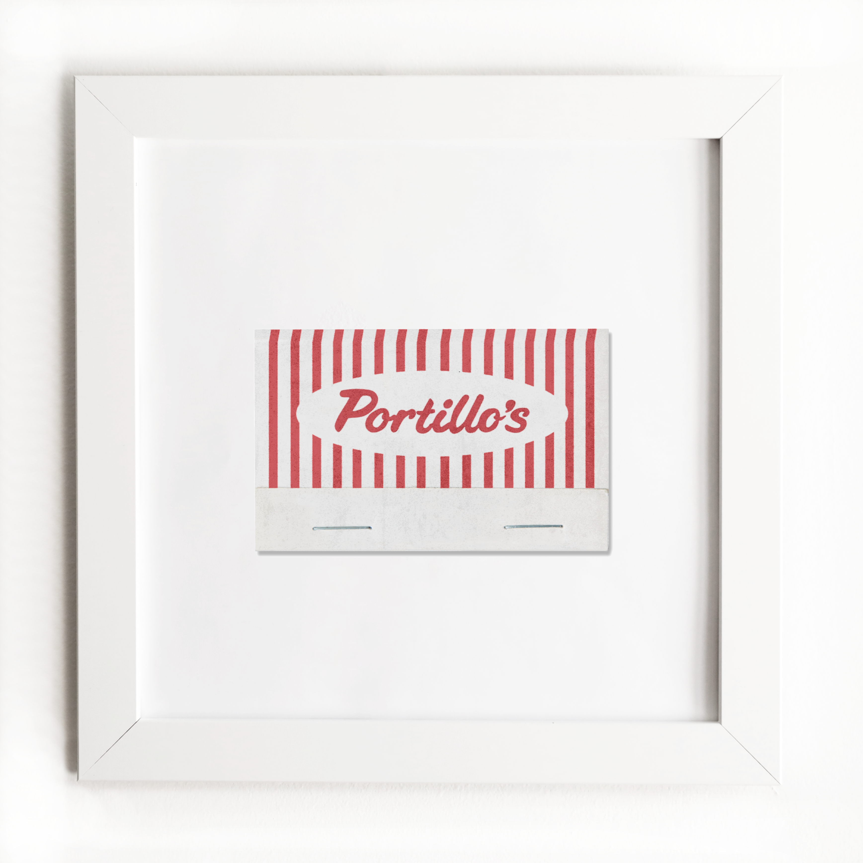 The Portillo's framed print captures the essence of vintage matchbook art in a 12x12 inch print, framed in a minimalist 14x14 white flat profile. With a clear acrylic cover ensuring safe delivery, this print is the perfect gift for anyone looking to add a piece of history to their walls.
